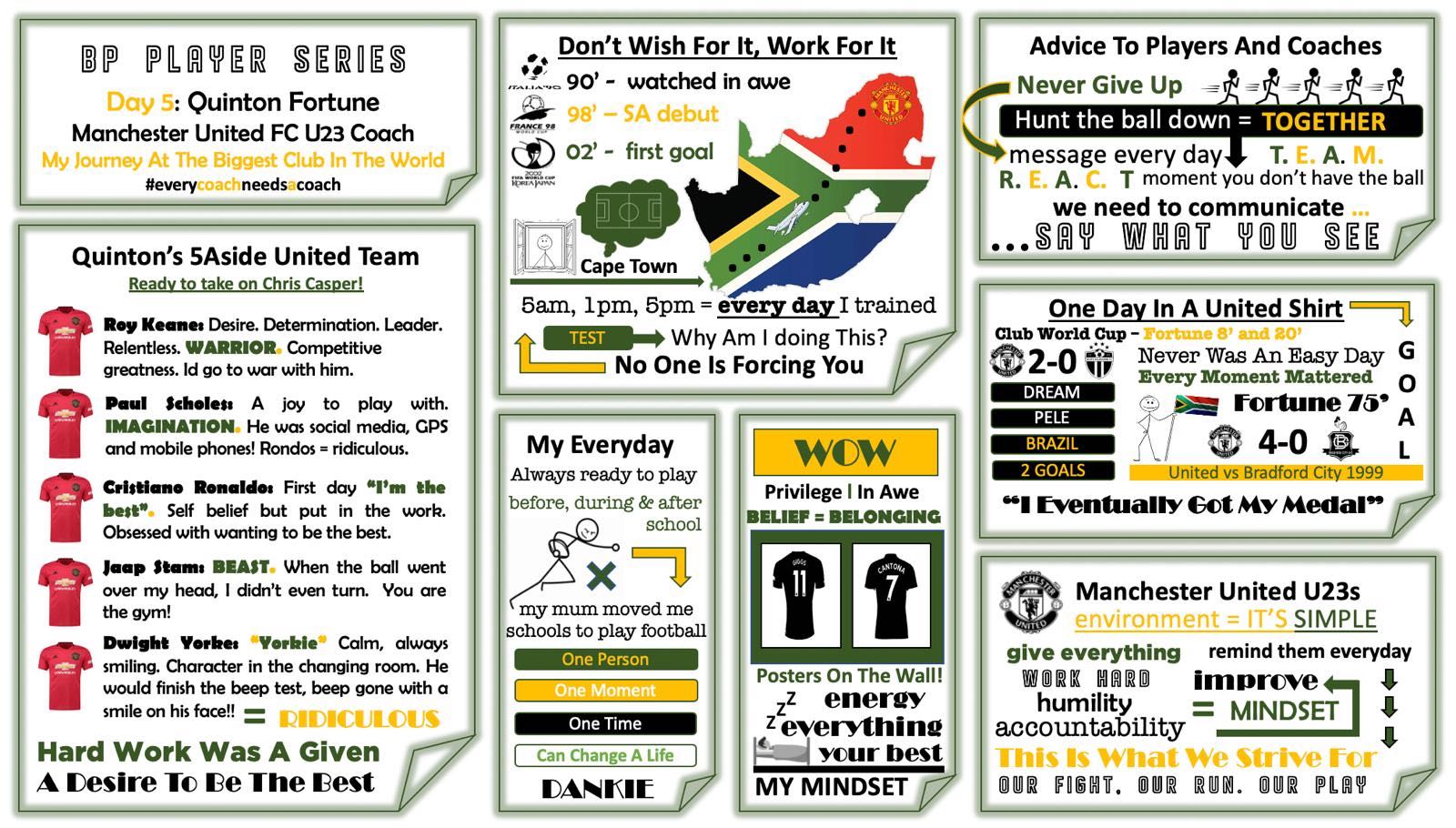 Quinton Fortune, former Manchester United and South Africa great and current Manchester United U23 Coach joined Tom Shields and Mark Wilson today to share his story of going from player to coach at; “The Biggest Club In The World”. Players and Coaches have so much to unpack from this hour. From 5 am and tripple day training sessions, to leaving home and moving to a foreign country at 13, scoring for your country in a World Cup, anecdotes of United under Fergie, comforting words from Jaap Stam and the mentality of Ronaldo. Please enjoy this incredible story.